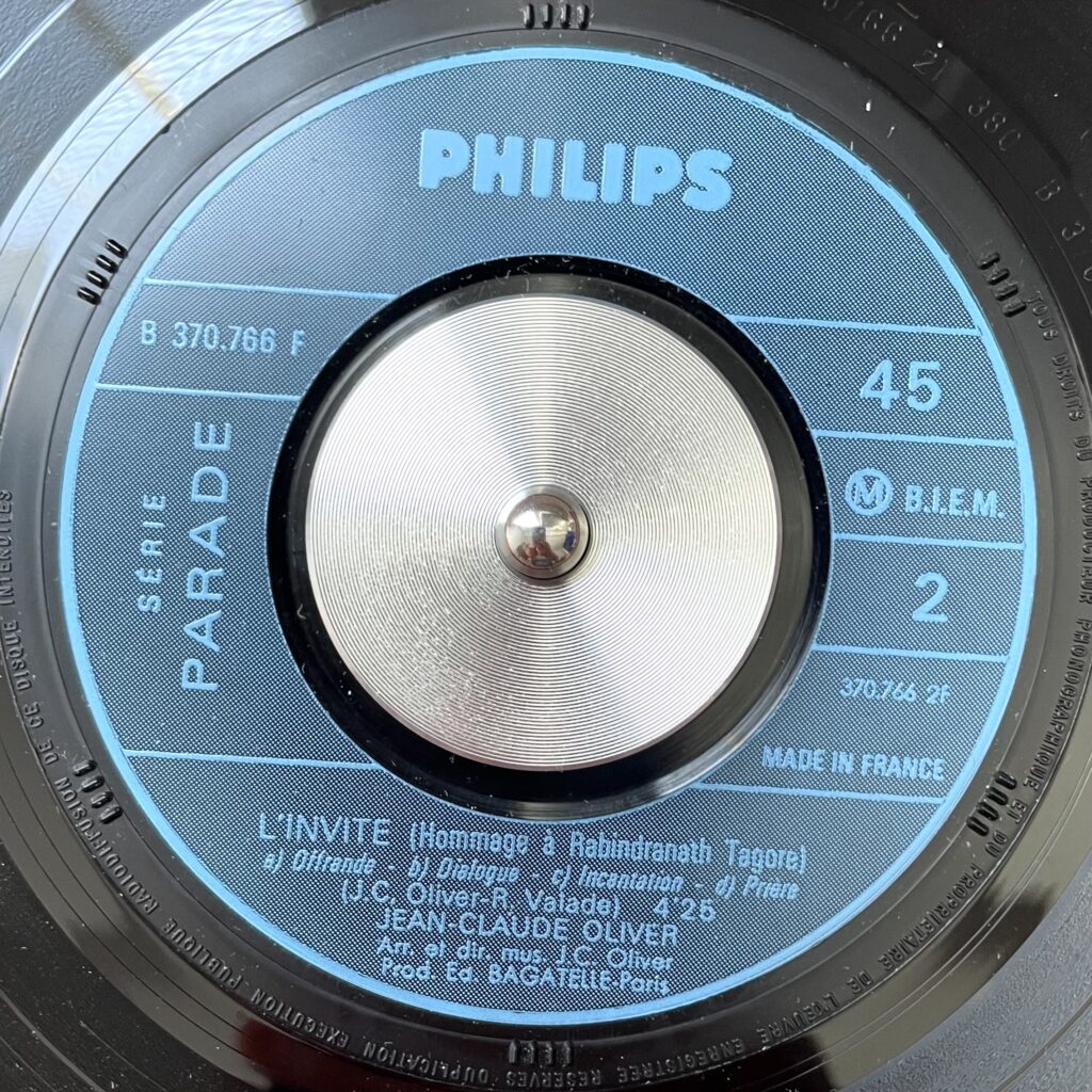 Comme souvent avec les 45 tours, surtout ceux des années 60 (Majority One, Aphrodite’s Child, Rare Bird, Crazy Elephant etc.), le morceau intéressant a été relégué en face B, une particularité très spécifique du format que j’apprécie particulièrement. J’en parlais d’ailleurs encore ici même en début d’année ! Jean-Claude Oliver nous gratifie en effet d’un Invité mémorable, dédié à Rabindranath Tagore, un poète, romancier, compositeur bengali du XIX et XXe siècle.