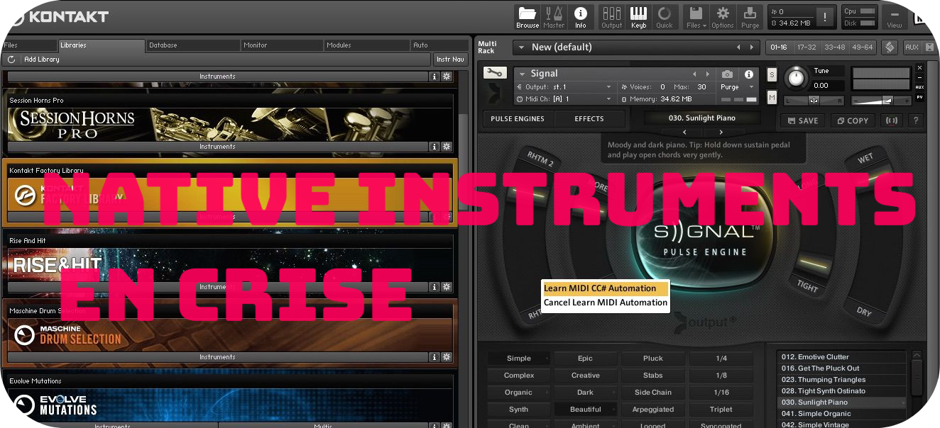La situation de Native Instruments est-elle endogène à la société ou exogène ? Est-ce que le manque d’innovation et la tentation de prendre les clients pour des ienclis qui ont conduit à cette situation ? est-ce une problématique qui peut toucher d’autres éditeurs ? Est-ce la Private Equity qui a fait foiré une entreprise saine ?