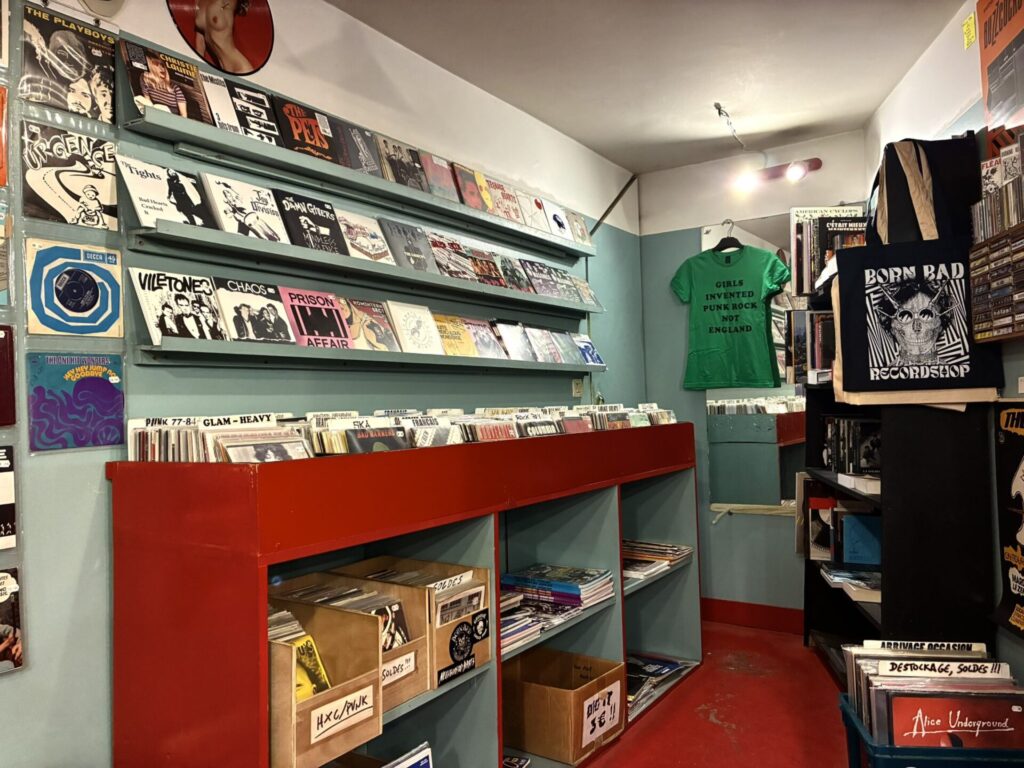 Je passe d’abord chez Yves (Hands & Arms), un client est là et on finit par discuter un peu de tout dont le dernier album de Sven Wunder (que je trouve excellent). Yves évoque aussi la situation préoccupante de certains de ces collègues. Je pense que je dois continuer de creuser et évoquer le sujet. Je prends une réédition du premier album de Pages, un classique yacht-rock ! Ensuite, arrêt chez Pop Culture Shop. Fred avait reçu l’album de Telephone Numbers mais pas encore celui de Sharp Pins. Ce sera pour la prochaine fois. Enfin, on se dirige chez Born Bad. Je n’y reste pas très longtemps, il y a un apéro et c’est difficile d’y écouter des disques ! Je discute un peu avec JB de Born Bad, à propos du dernier Forever Pavot. Je prends néanmoins le dernier album d’Home Front que j’échangerai le lendemain car il avait une rayure audible.