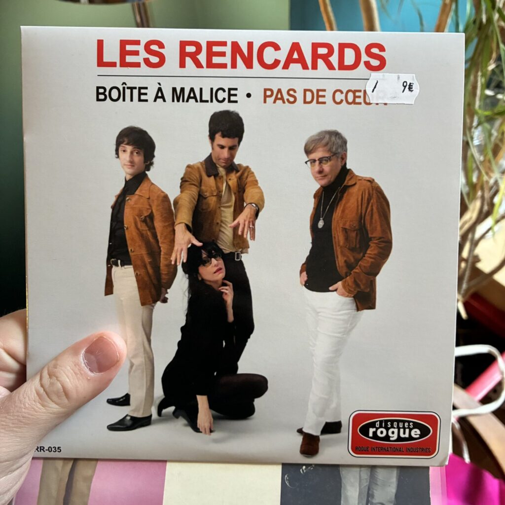 Premier arrêt chez Hands & Arms qui a enfin reçu l’album de Soyuz chez Mr. Bongo. Figurez vous que je l’écoute à l’instant même en écrivant ces quelques lignes. Je complète le panier avec le nouvel album des Rencards, un groupe franco-espagnol de garage-yéyé, une nouveauté. Dans la foulée, pris par cet élan dépensier, j’y ajoute deux albums de Fabienne Delsol, stylistiquement assez proches des Rencards.